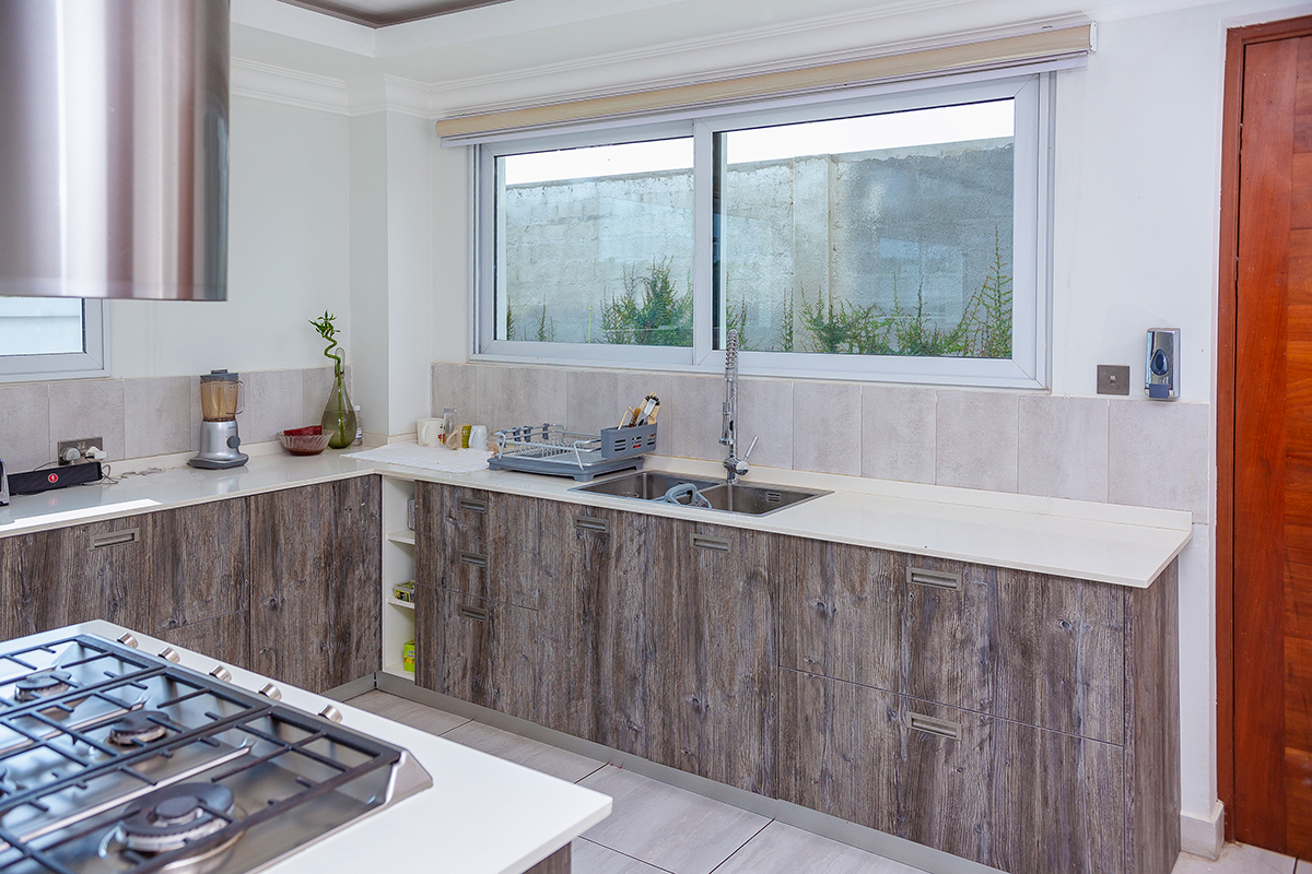 Design, production and installation of kitchens. Supply and installation of kitchen appliances and accessories, including sink and tap.