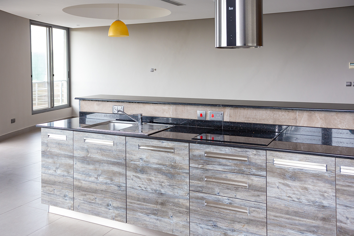 Design, production and installation of kitchens and wardrobes. Supply and installation of kitchen appliances and accessories, including sink and tap.